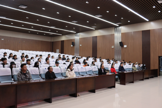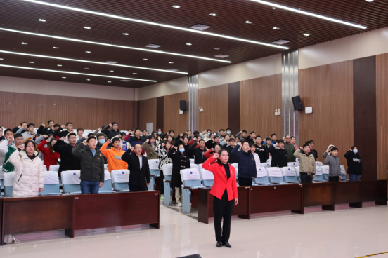 升旗仪式结束后,我院在123报告厅举行“庆元旦,迎新年”主题活动暨预备党员宣誓仪式。学院党委书记沈大强、副书记吴达慧、组织员范剑辉、组织员覃戟、学工组辅导员王纪坤与全体预备党员参加了本次活动。