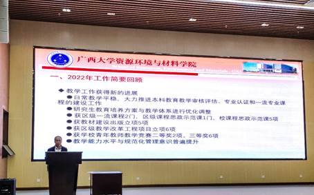 院党委书记沈大强书全面地总结回顾了学院2022年的工作,高度赞扬了对学院突破性进展和标志性成果付出的师生,深入地分析了学院发展当前面临的形势和压力、机遇与挑战。在会上,沈大强从做好党的教育路线方针政策的贯彻落实;深入学习理解和贯彻落实中国式现代化和质量强国等新发展理念;坚定政治立场,固牢意识形态根基,以社会主义核心价值观培根铸魂育新人;加强学习提高和学用结合;持续提高师德修养;做好队伍建设,积极培育、招引人才;围绕科技前沿,努力聚焦重点研究方向,积极助力省部共建国家重点实验室和“双一流”建设,谋划、攻关大项目、大成果;聚焦全院力量,利用好学校资源,提高学科建设水平;加强内涵核心竞争力建设,提高人才培养质量;人人有责,人人尽责,时刻牢记安全要求,扎实保证全面安全;非专任教师要以国家级团队的标准,高位对标、转变观念、提高品质效能,积极主动全面服务于教学科研,服务于老师学生;党支部、党员加强锤炼、夯实基础、主动引领,充分发挥作用,严格落实全面从严治党要求等12方面,对学院的新年新学期工作提出要求,希望学院师生用真抓实干落实党的二十大精神,在新一年里全院师生继续齐心努力、坚持立德树人,坚持守正创新,争创更多一流的优异成绩。