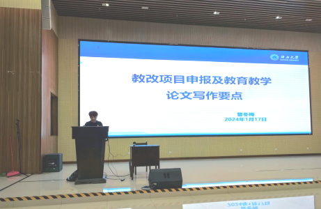 1月17日,原学校党委常委、统战部部长、高教所所长曾冬梅教授应邀到我院进行题为《教改项目和核刊教改论文撰写关键要点》教学改革创新专题辅导报告。我院全体专任教师到场学习和教研活动,院党委书记沈大强、教学副院长孙翔参加了报告会。