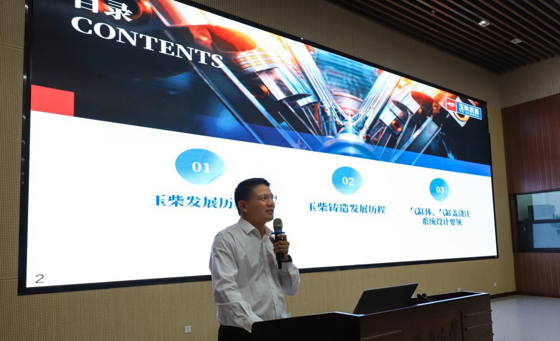玉柴铸造党委书记、副总经理、高级工程师梁成振在学院作“匠心育人讲堂”专题报告。玉柴公司党委副书记王铭等人以及学院相关师生代表参加,报告会由学院党委书记沈大强主持。