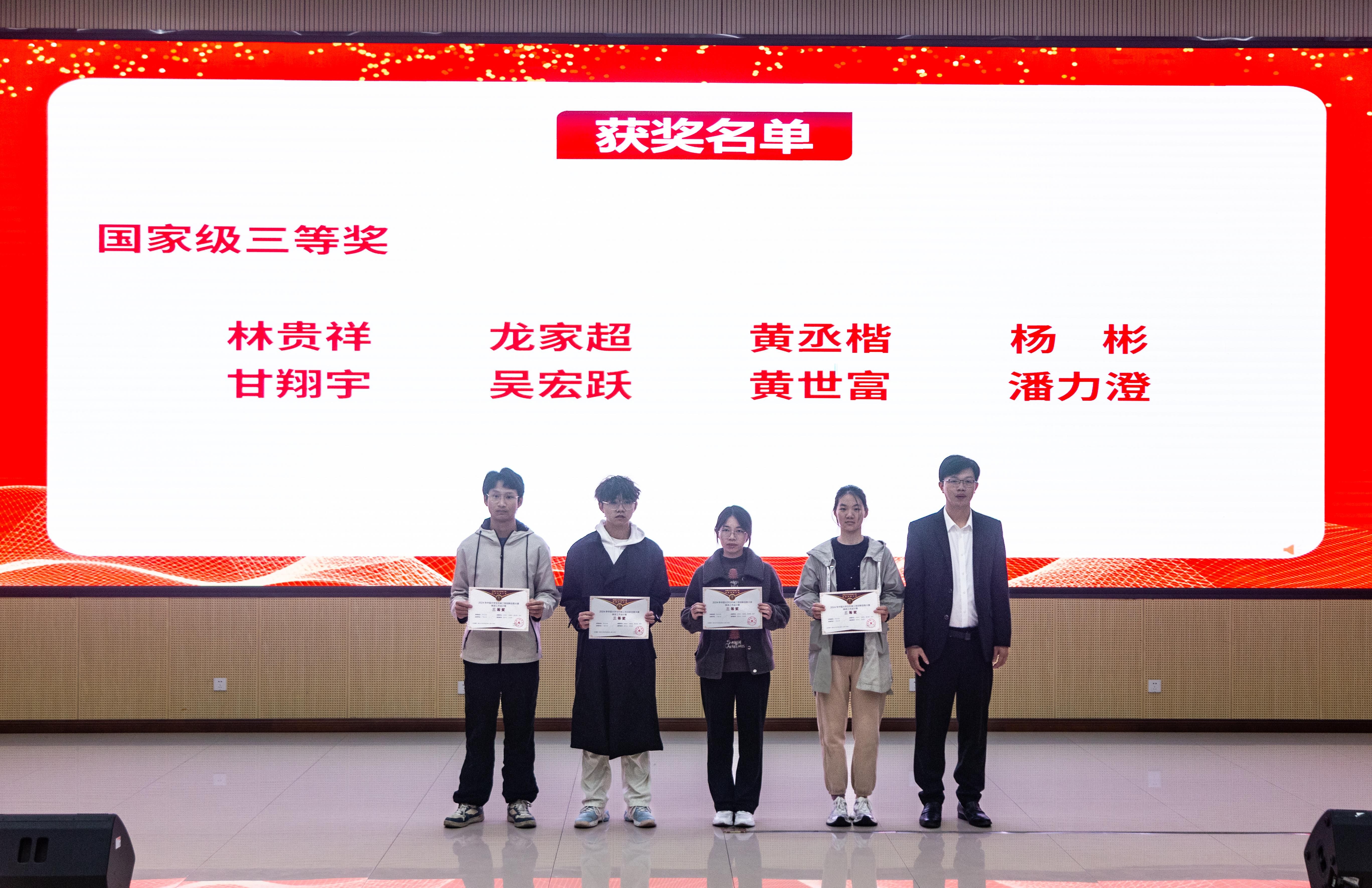 潘利文老师为创新大赛广西区赛获奖学生颁奖