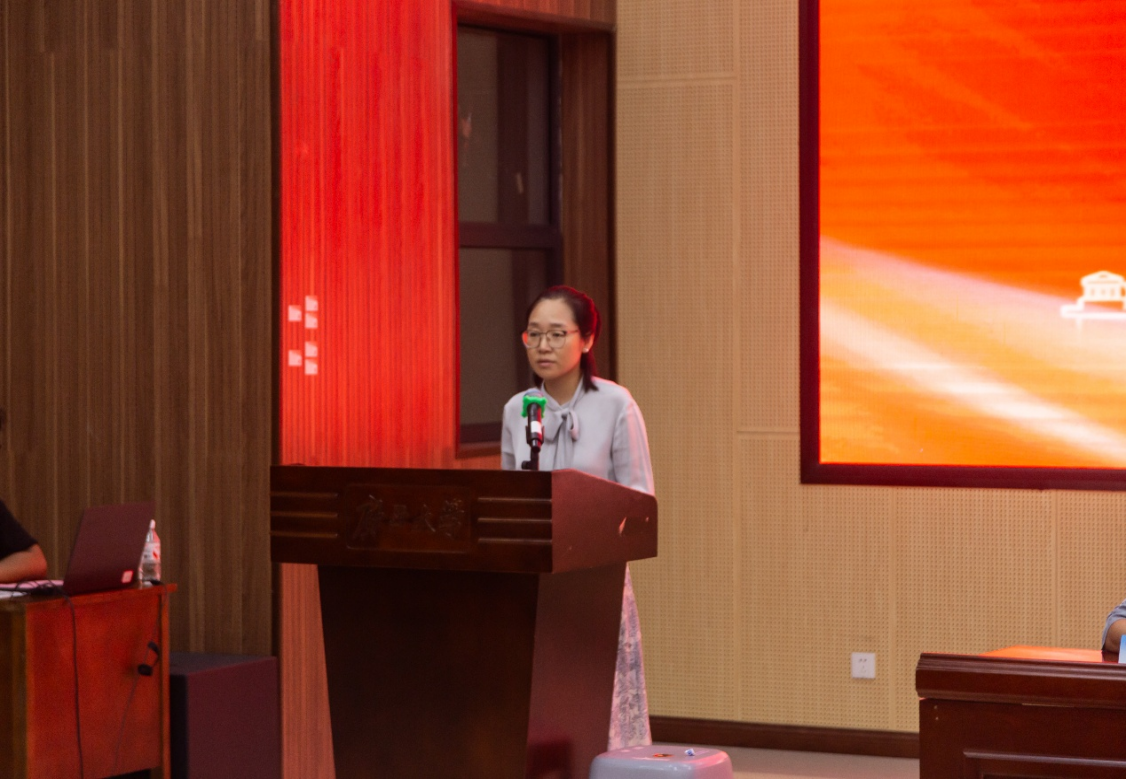 材料科学与工程专业2025级新生代表诸丽娟同学在大会伊始作新生发言。她表达了成为我院研究生的荣幸与激动,并对未来的学习生涯充满期待。她号召全体新生珍惜学院优质的科研平台与资源,秉承“勤恳朴诚,厚学致新”的校训,以踏实钻研的态度投身学习科研,努力成长为专业扎实、勇于创新的高层次人才。