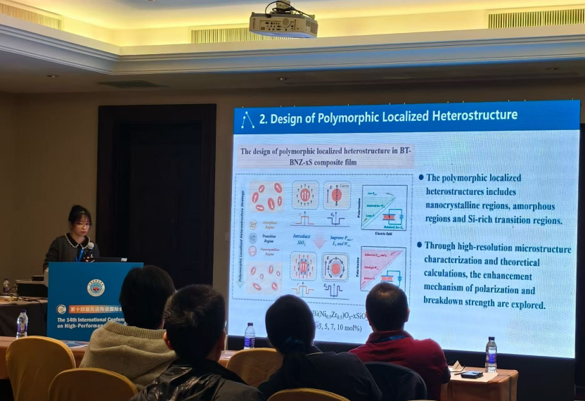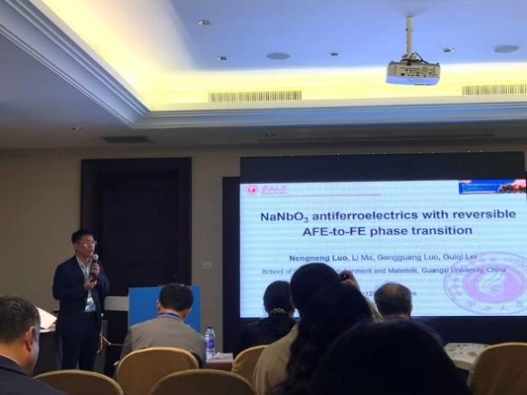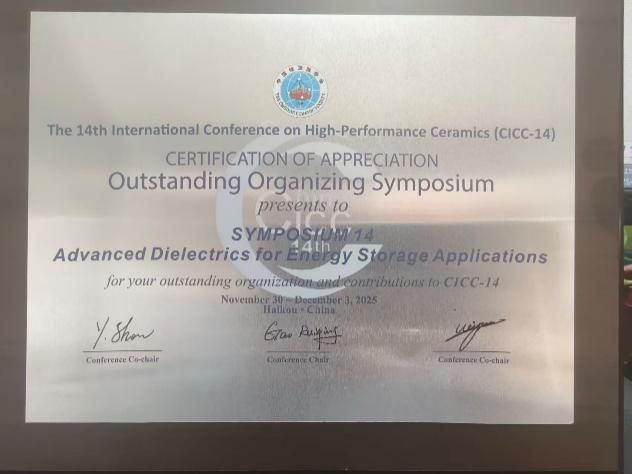 12月1-3日,在“Advanced Dielectrics for Energy Storage Applications”分论坛会议上,罗能能教授以“NaNbO3 antiferroelectrics with reversible AFE-to-FE phase transition”为题针对反铁电陶瓷储能性能改善介绍了调控“晶格旋转畸变”策略,并担任该分会场主席;黄瑞助理教授、博士研究生何霞凤、硕士研究生徐凡非以口头报告,硕士研究生熊倩、赵琨、杨超以海报形式分享了我校在功能陶瓷领域最新的学术研究成果。硕士研究生熊倩、赵琨还作为志愿者参与了会议的组织。会场互动踊跃,提问不断,呈现出活跃的学术对话与思想碰撞。该分会获得大会“Outsanding Organizing Symposium”奖。