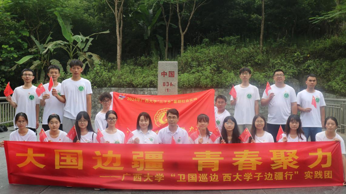 7月15至17日,根据广西大学团委统一安排部署,beats365(中国区)-唯一官方网站组建“卫国巡边,西大学子边疆行”实践团到崇左市龙州县和大新县开展2024年暑期社会实践活动。活动中,团队用“四个一”倾诉对祖国的深深思念,表达对祖国的切切祝福。