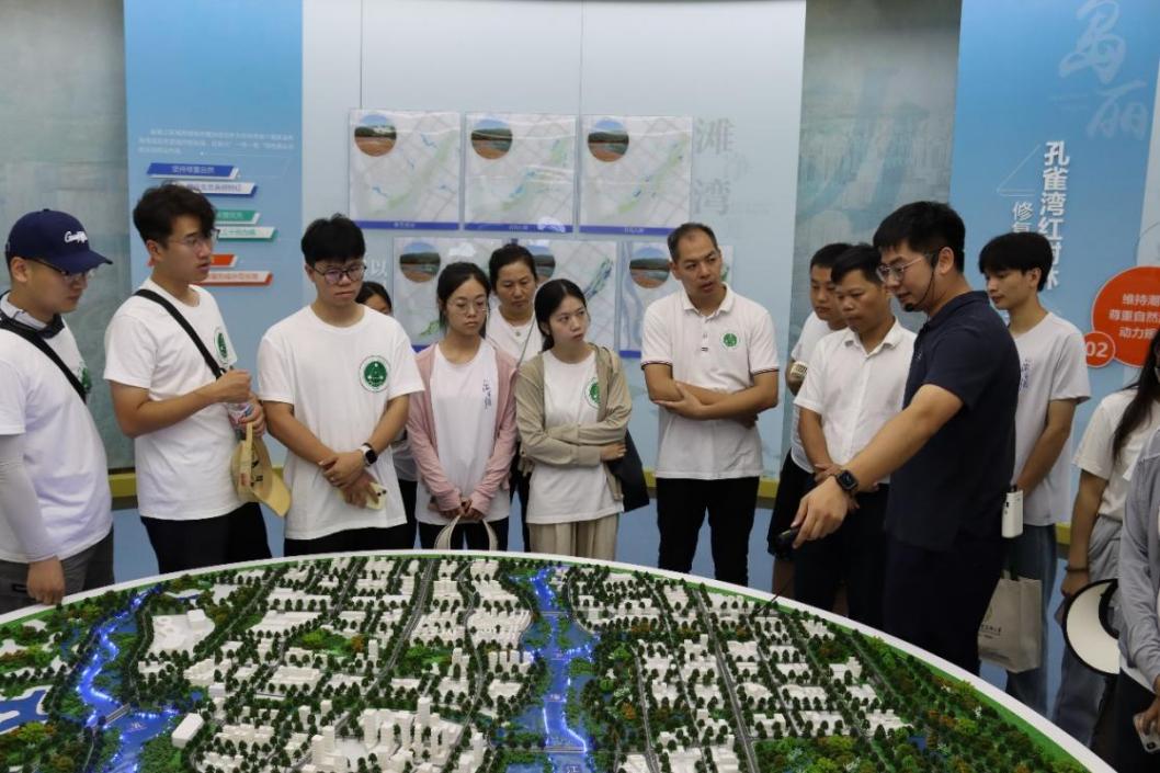 在金鼓台海洋科普馆内,团队参观滨海运河城市建设项目,重点了解该项目的生态规划设计理念方法。现场,科普讲解员详细介绍了“蓝色海湾行动”,讲述这一生态行动部署是中国“十三五”规划纲要中的重大海洋工程之一,而金鼓江区域岸线综合整治项目则是国家“蓝色海湾行动”在广西区内的首个落地实践。
