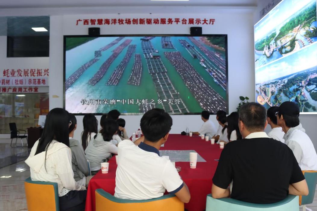 实践团队观看大蚝养殖视频