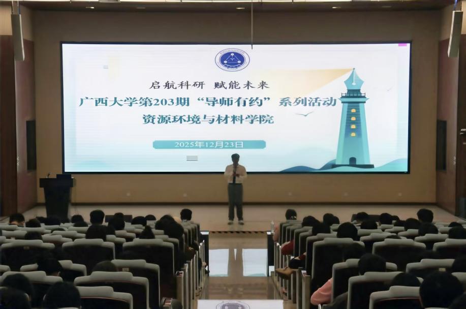 12月23日,广西大学第203期“导师有约”活动在我院123报告厅顺利举办。本次活动主题为“启航科研,赋能未来”,特邀请我院侯燕萍教授、莫伟教授、孙建平教授和岑侦勇副教授担任主讲嘉宾。院长邹炳锁,党委副书记、纪委书记梁宇彬,团委副书记周大淇出席活动,各年级学生参加活动。
