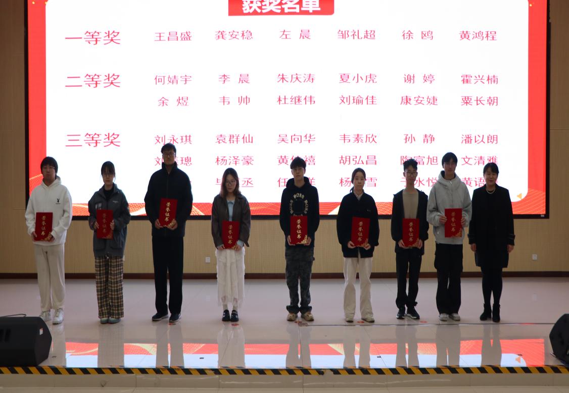 梁宇彬老师为第十二届“挑战杯”广西大学生课外学术作品竞赛获奖学生颁奖