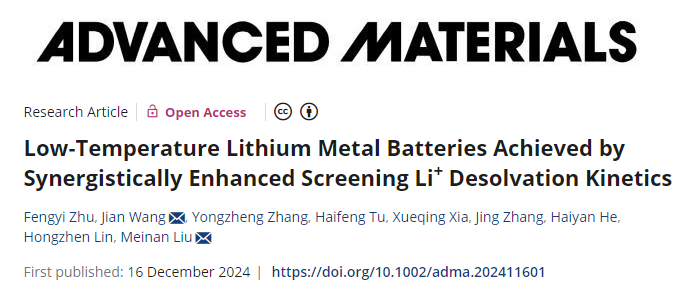 近日,我院先进储能材料与器件团队在低温锂电池研究领域取得重要进展,研究成果以“Low-Temperature Lithium Metal Batteries Achieved by Synergistically Enhanced Screening Li+ Desolvation Kinetics”为题发表在国际顶级学术期刊 Advanced Materials上。这是我院首次以第一完成单位在该顶级期刊发表学术论文,该项目研究得到了国家自然科学基金和广西大学科研基金等项目支持。
