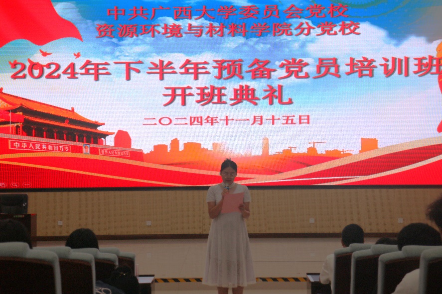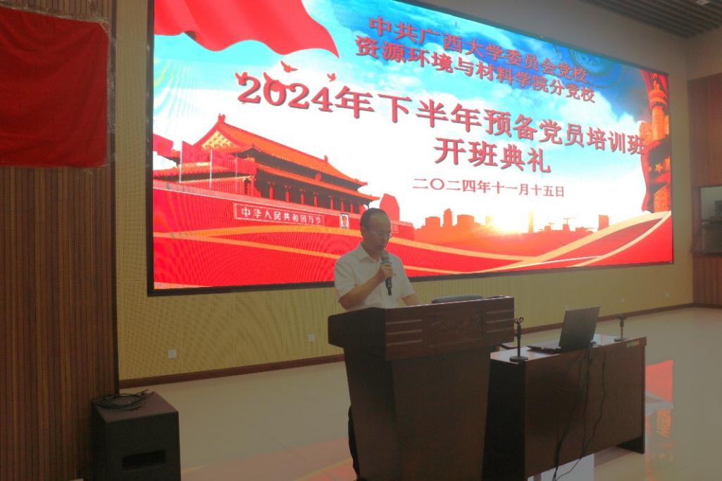 为加强思想教育,提升政治素养,11月15日,我院2024年下半年预备党员培训班在院123报告厅顺利开班。学院党委书记沈大强、培训班班主任田春老师和全体学生预备党员参加开班典礼。