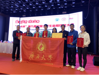 2020年10月10日至14日,由教育部高等学校材料类专业教学指导委员会主办的第九届全国大学生金相技能大赛复(决)赛在山西太原举行。我院冯品铭、陶祖珊和蒙丽华三名同学参赛,其中冯品铭获一等奖,陶祖珊获二等奖,蒙丽华获三等奖。此外,我院师生组成的广西大学代表队还荣获了团体三等奖,梁洁、梁天权、何欢三名老师获优秀指导教师奖。
